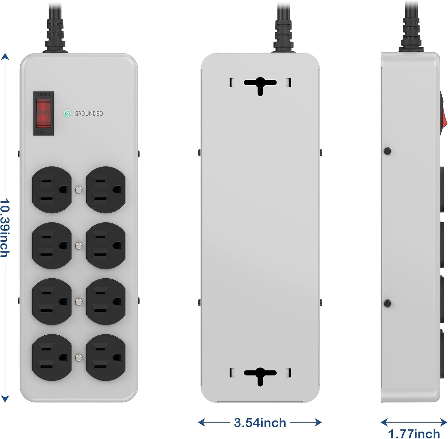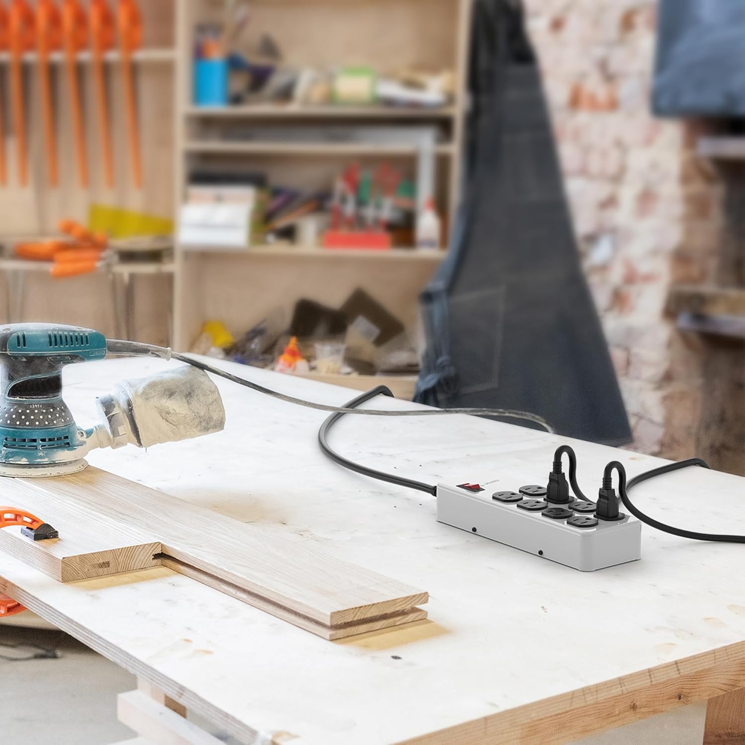 • High Capacity Powering: Equipped with 8 AC Outlets, this tool power strip surge protector has an electrical rating of 15A 125V 60Hz 1875W, combined with a 10ft 14AWG Heavy Duty Power Cord. It's the ultimate solution for all your power needs in heavy-duty settings, embodying the essence of a shop power strip heavy duty 15 amp.