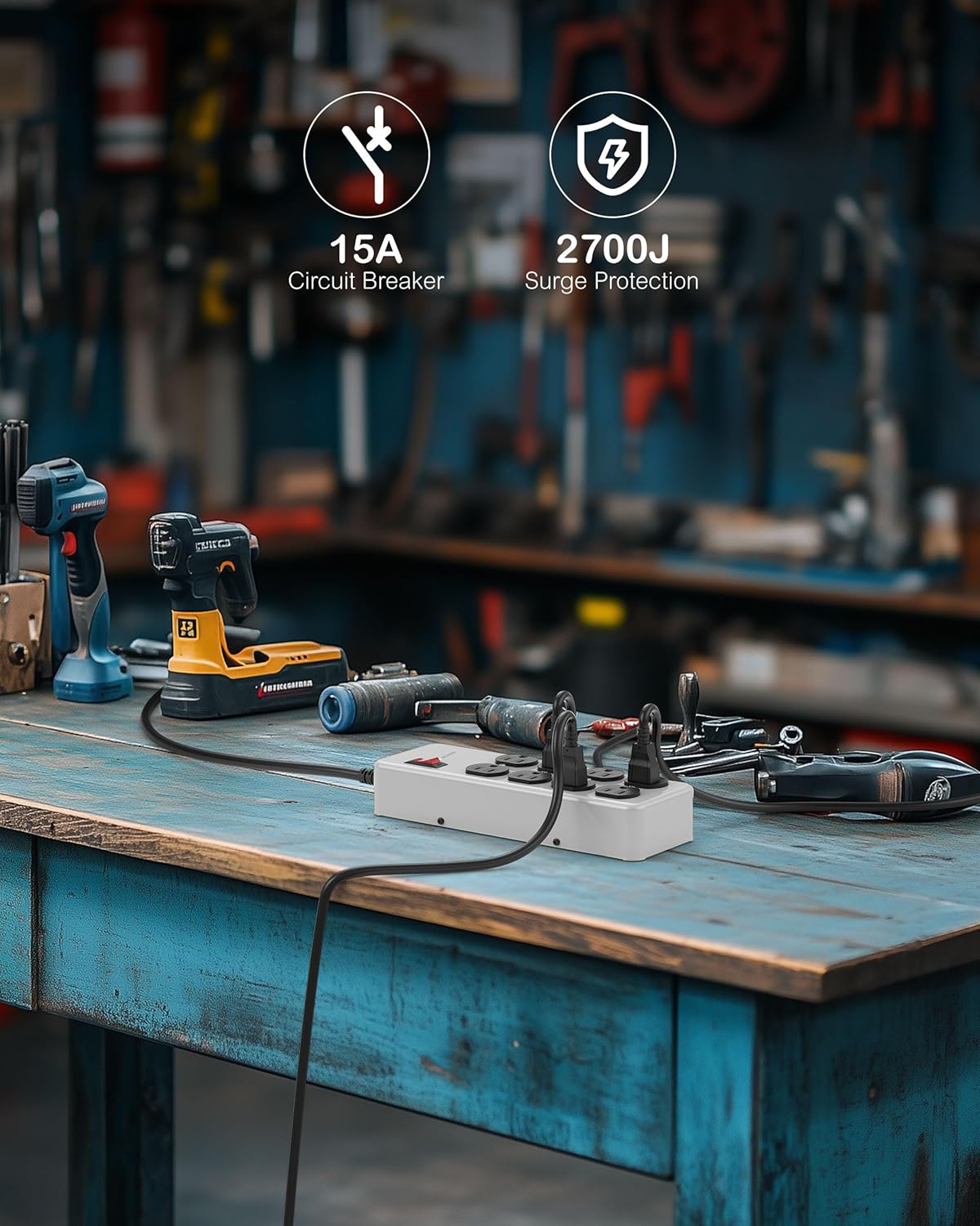 • Comprehensive Protection: this outdoor surge protector delivers 2700 Joules of protection and a 15Amp circuit breaker, ensuring your equipment remains safe from unexpected power spikes. The industrial-grade shop power strip is not just a device; it's a safeguard for all your electrical applications.