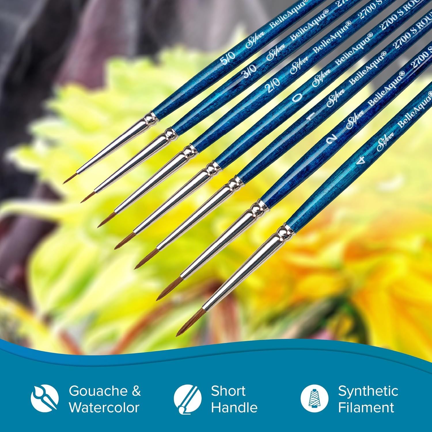 • BelleAqua: Our BelleAqua brushes were created for watercolor artists and skilled hobbyists. Each BelleAqua water color brush is soft enough to add color without disturbing previous layers but firm enough to lift color when needed. The BelleAqua is our most absorbent series, meaning it carries more color effortlessly from your watercolor palette to your painting surface so you do not have to reload often.
