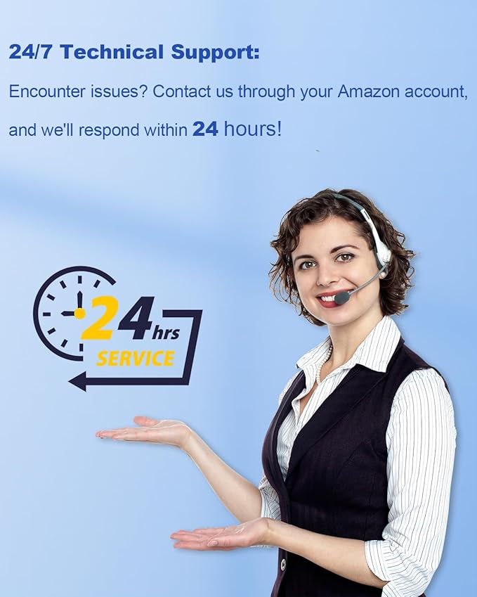 • 24 Hour Technical Support: If you encounter any issues, please get in touch with us through your Amazon account by navigating to Your Orders and finding your order. Then, click Contact Seller. We will respond to all emails within 24 hours