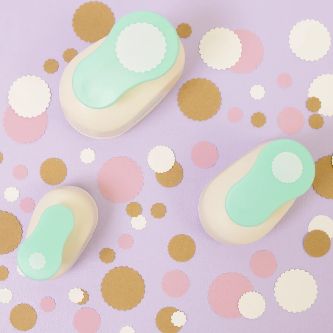 • 🕳️ CRAFT CIRCLE SCALLOP PUNCH SET: Includes 3/8" (0,95cm), 5/8" (1,58cm), and 1" (2,54cm) scalloped circle punches.