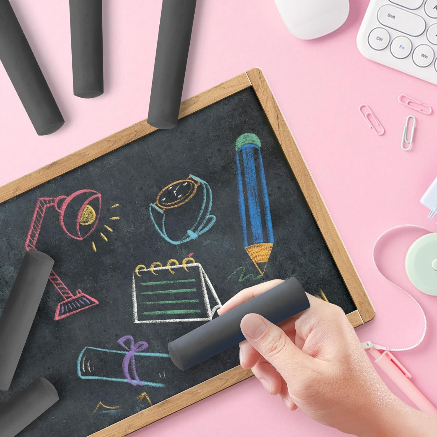• Washable and Easy clean chalk set: The young childrens chalks are washable and easy to clean off any surface, ensuring your family can enjoy mess-free drawing, ideal for both indoor and outdoor use
