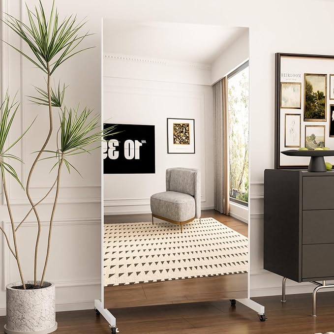 • Effortless Mobility for Versatile Use: Equipped with high-quality wheels, this rolling mirror moves easily, perfect for home gyms, dance studios, and yoga rooms.