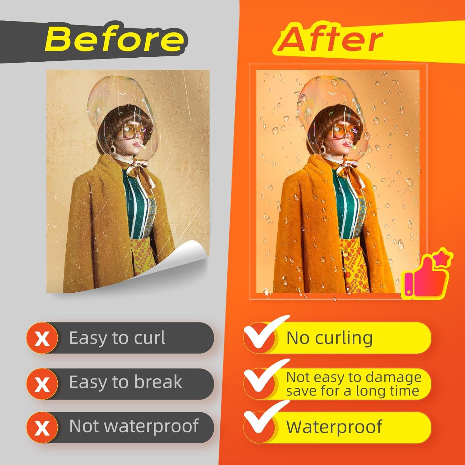 • EASY TO USE :If you want to save cost and time or have no laminator, our non-thermal laminating sheets are your best choice. Even a beginner can use it safely since it doesn't require a heat press machine, and you can easily do the lamination by hand or with a scraper. In addition, it is easy to erase marks on the smooth and glossy surface with dry-erase pens. Whether you're a business professional or collector, you'll love these lamination sheets for all your quick laminating projects.