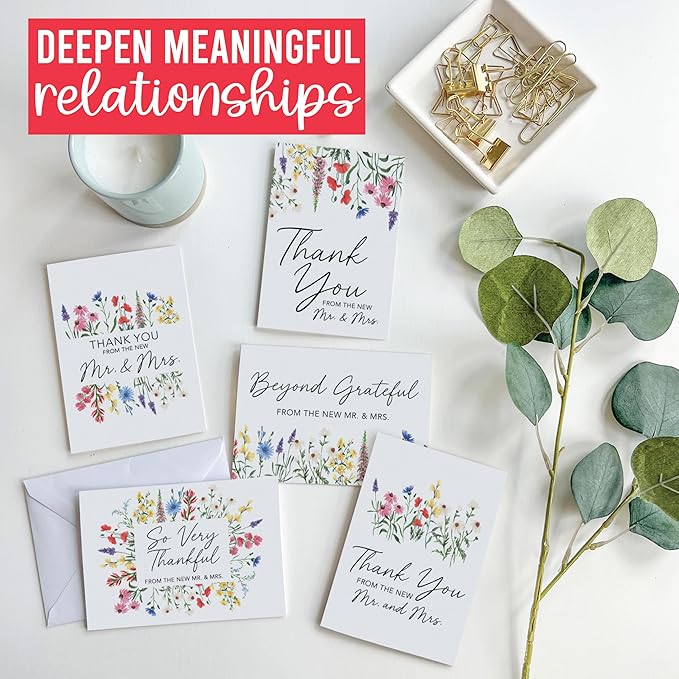 54 Wildflower Wedding Thank You Cards with Envelopes Wedding - Bulk Thank You Cards Wedding with Envelopes, Elegant Thank You Wedding Cards with Envelopes, Wedding Thank You Notes Wedding Cards Bulk