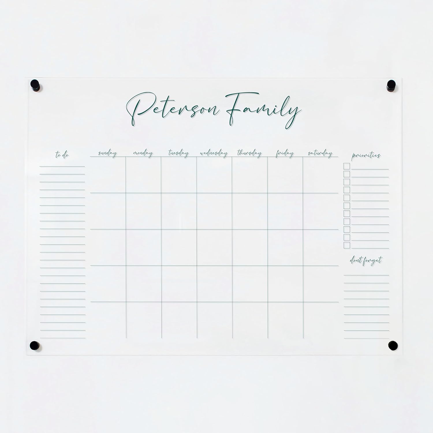 Personalized Clear Acrylic Calendar for Wall, Calendar Whiteboard for Wall, Dry Erase Wall Calendar, Wall Calendar Organizer System for Home (Cursive, Jade, 31"W x 23"H)