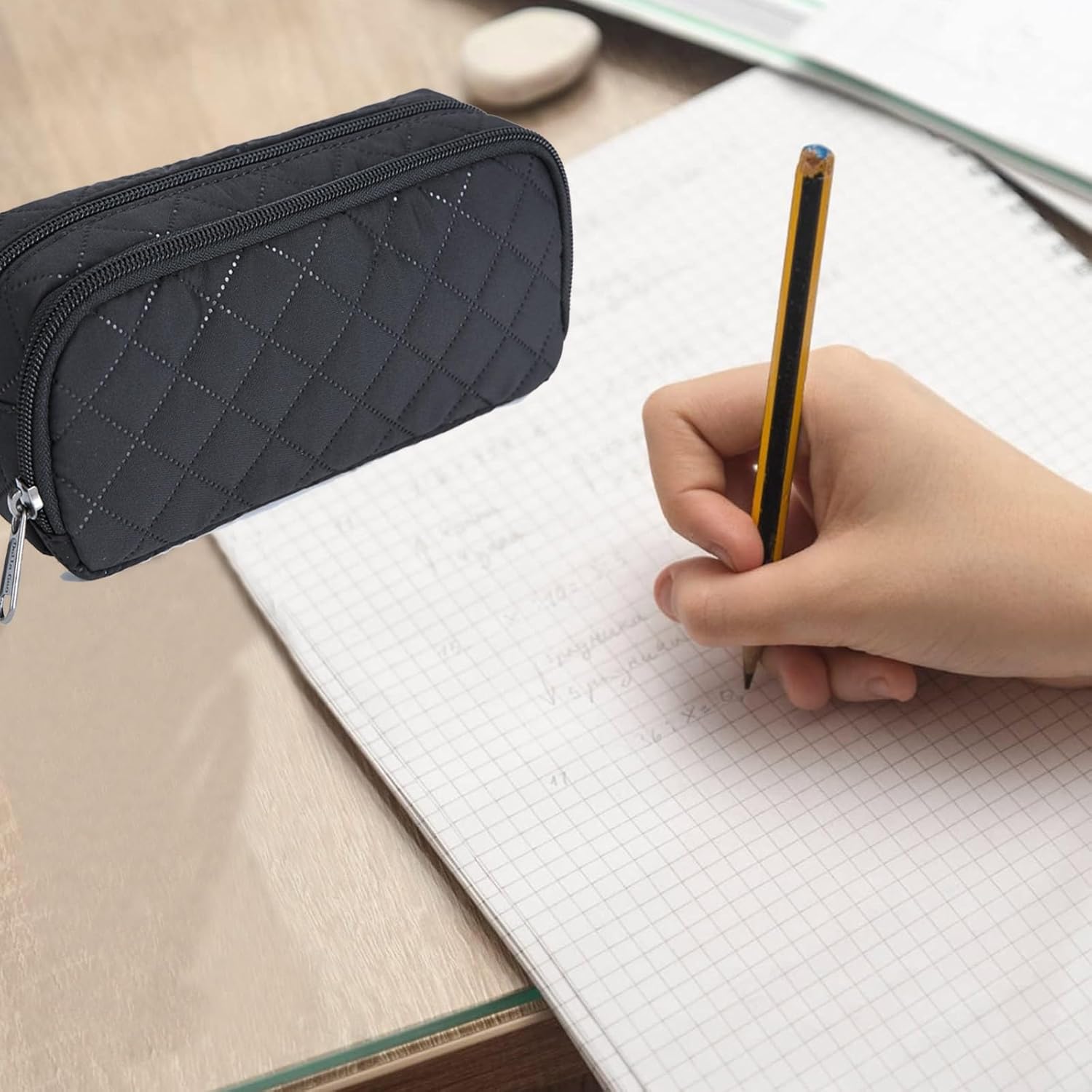 • Quality Material & Accessories:The black pencil case is made of durable lightweight nylon material, it's water-resisitant, tear-resisitant and washable.But you cannot put it in water, because the zipper are not waterproof