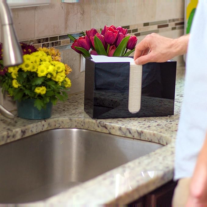 • Stylish Storage: Available in a range of color variations, this stylish tray enhances any décor while keeping your trifold towels or napkins easily accessible for guests. This black paper towel holder is perfect for adding a touch of elegance to your kitchen countertop or office tabletop. Other great options include clear and gold, offering versatility to suit any style preference.