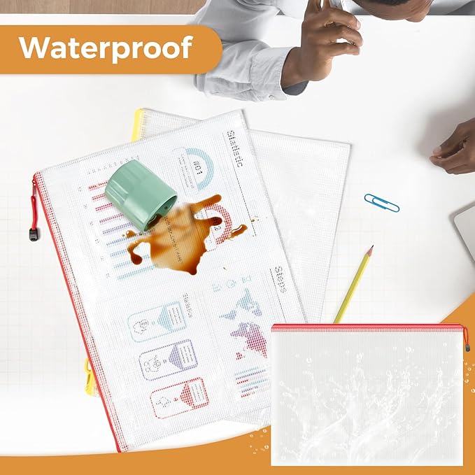 • 【PVC Material】 The mesh bags are made of pvc material, safe and non-polluting, sturdy and flexible, easy to carry. Waterproof and moisture-proof, it can effectively great your documents. Smooth metal zipper, strong and sturdy