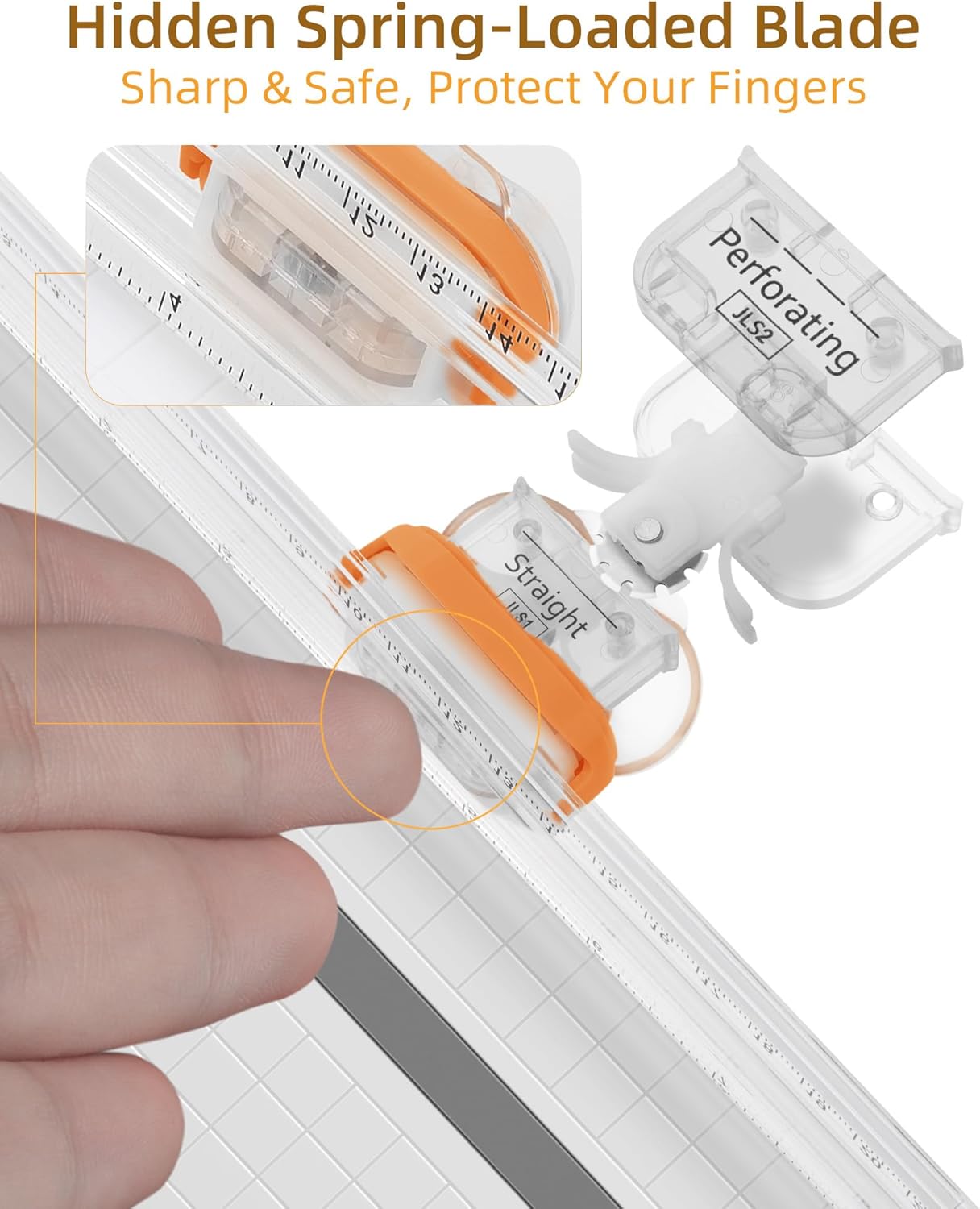 • 3-in-1 Paper Cutter: Combines paper cutter, paper scorer, and paper perforator for versatile document and craft needs, allowing for precise cuts, effortless tear-offs, and clean folds