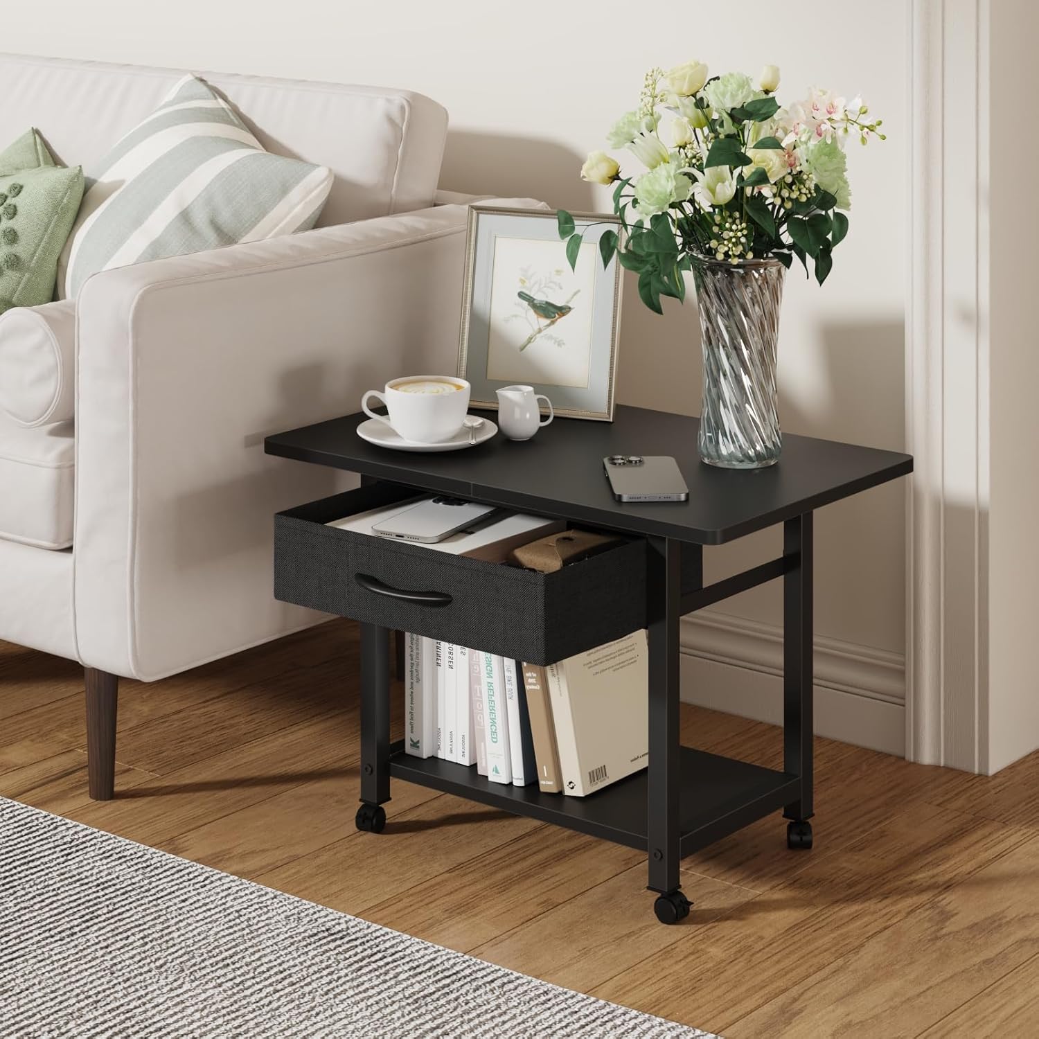 22"x15" Large Printer Stand with Storage Drawer, 2-Tier Under Desk Printer Table for Home Office, Printer Cart fit Fax Machine/3D Printer/Scanner(Black)