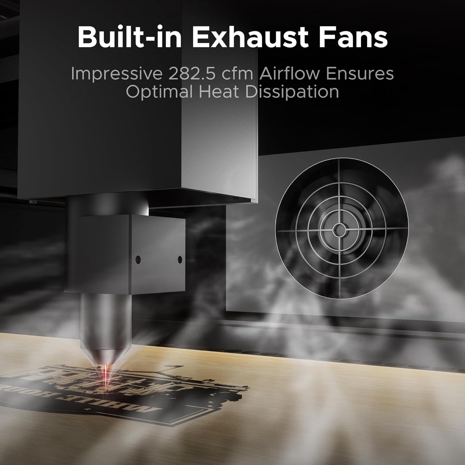 • Easy Setup Anywhere: At just 90.4 lb., this compact laser cutter is easy to move and set up wherever you need it. Whether you're working in tight spaces, switching between projects, or taking it to events, you can quickly relocate and get to work