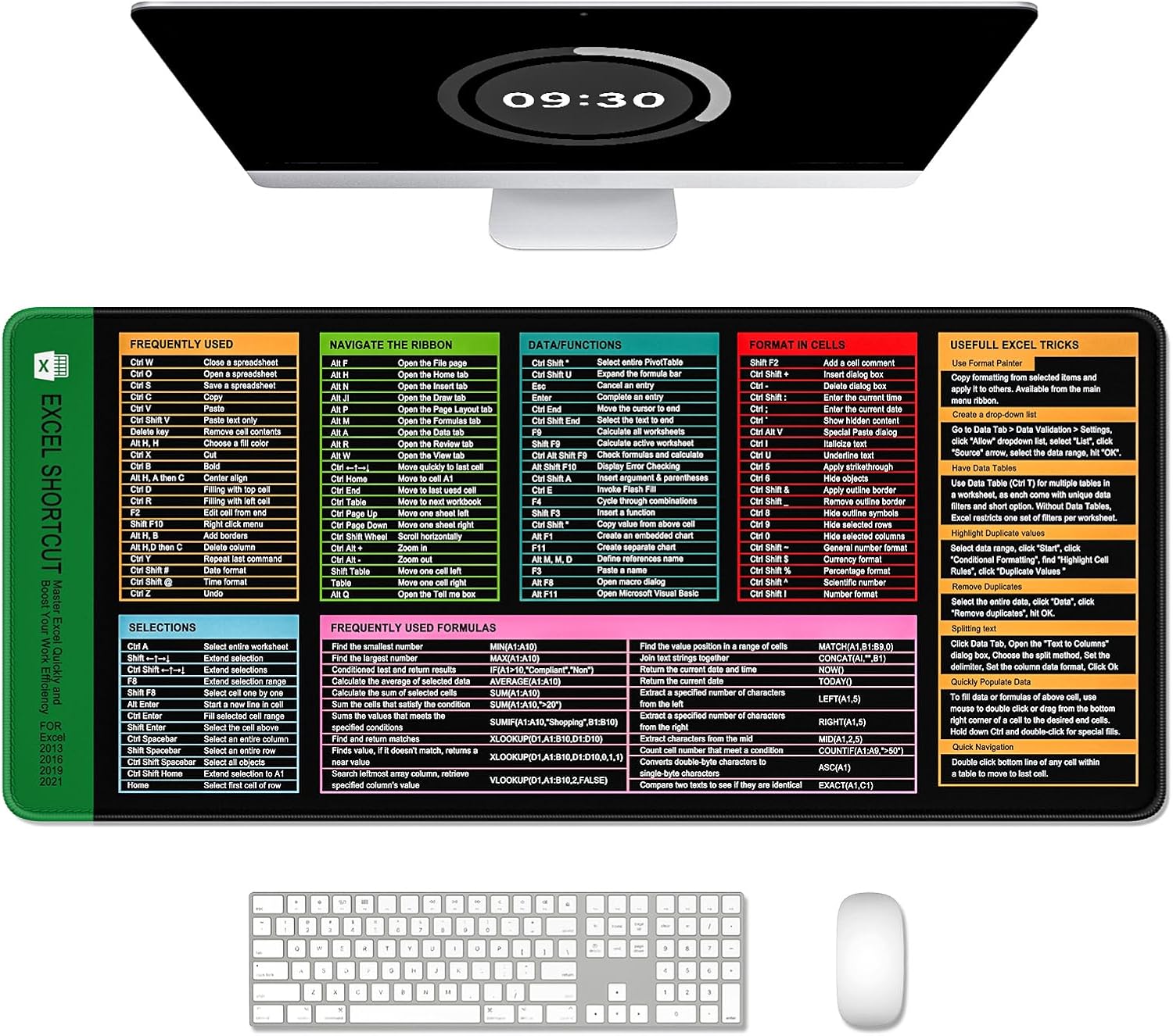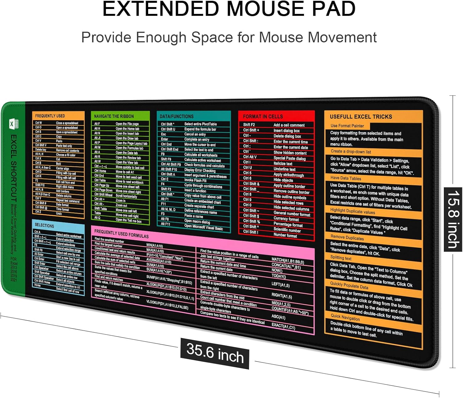 Auhoahsil Large Mouse Pad, XXL Gaming Mousepad, Desk Mat for Desktop, Thick Rubber, Big & Long Size, Stitched Edges, Full Desk Pad for Laptop & Computer, Extended 35.4 x 15.7 in, Excel Shortcut Keys