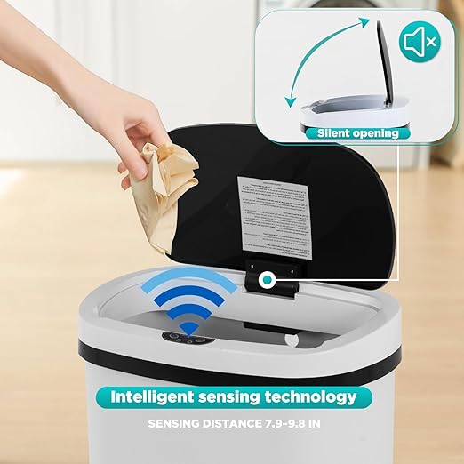 • Smart Motion Sensor : Our trash can uses smart sensing technology to reduce unnecessary openings.Detects hand movement or presence nearby and lifts the lid automatically, making trash disposal more convenient and hygienic.
