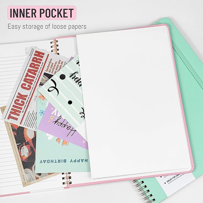 • This notebook comes with an elastic closure band and a pocket on the back cover for storage. Each page has a Date for easy date tracking.