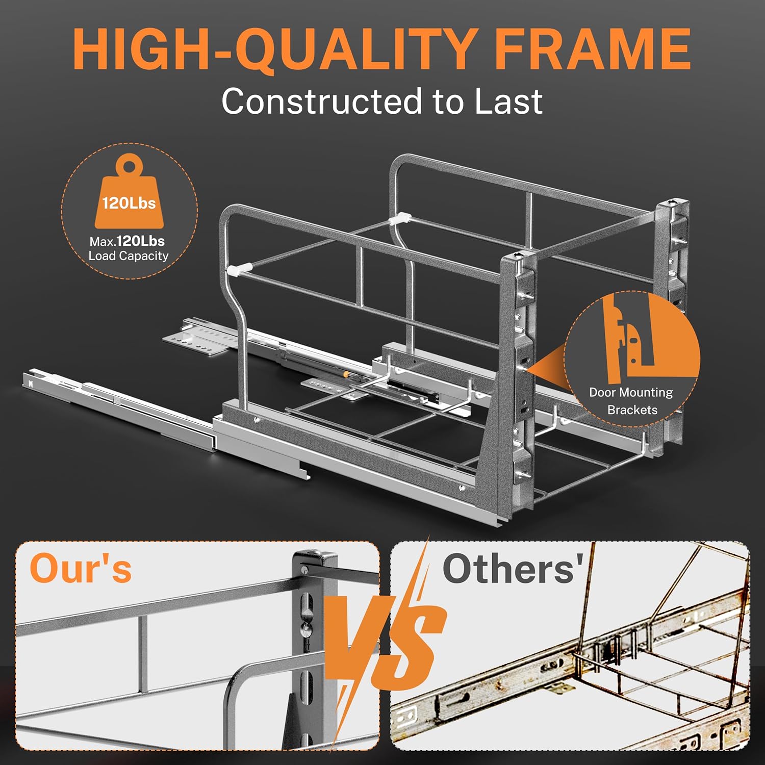 • Premiun Material: Trash can cabinet pull out is made of high-quality carbon steel with powder-coating surface for durability and rust resistance, allowing you to clean it with a cloth. Made for a trash can kitchen of 28 to 40 quarts (7–10 gal, 26–37 l) in volume, the frame can carry 120 pounds, 60 pounds more than regular slides.