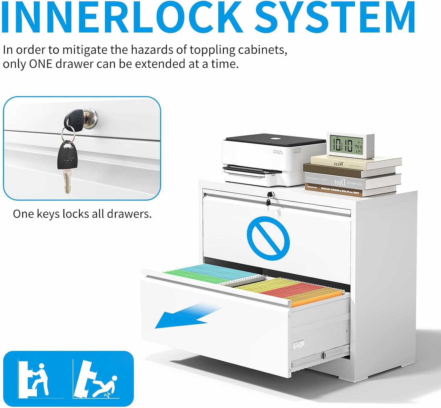 • 【Safety & Security】Interlock system prevents tipping when opening multiple heavy drawers. One lock with 2 keys secures all 2 drawers, add security to your home and office