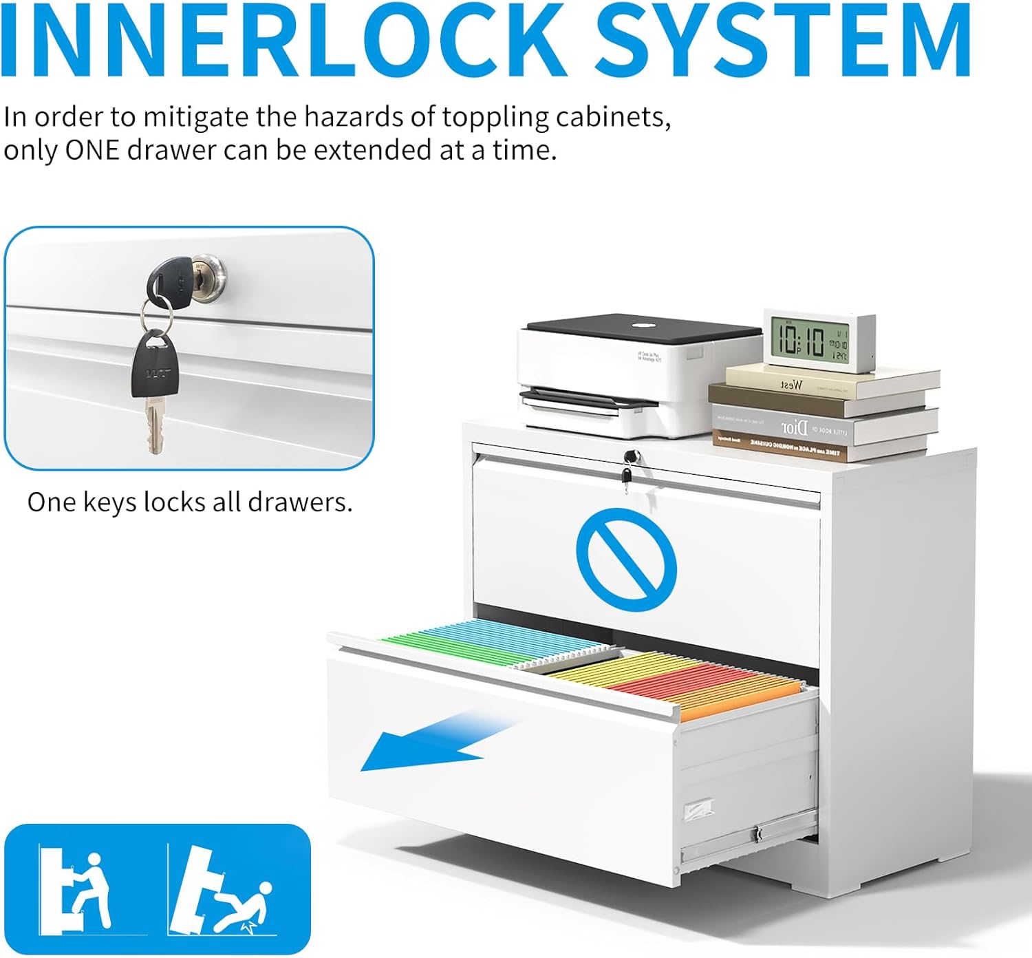 • 【Safety & Security】Interlock system prevents tipping and does not allow multiple drawers to be opened at the same time. The smooth, quiet sliding rails make opening and closing drawers effortless and noise-free. One lock with 2 keys secures all 2 drawers, it ensures that your files remain safe from unauthorized access.