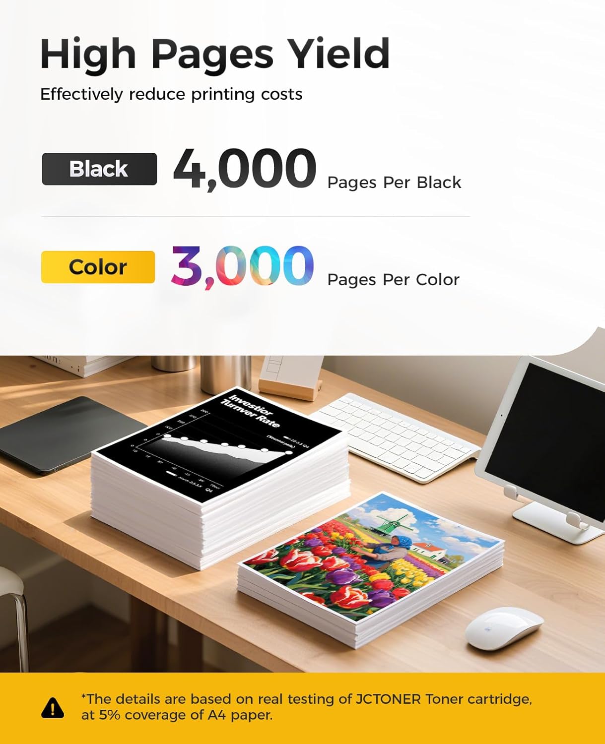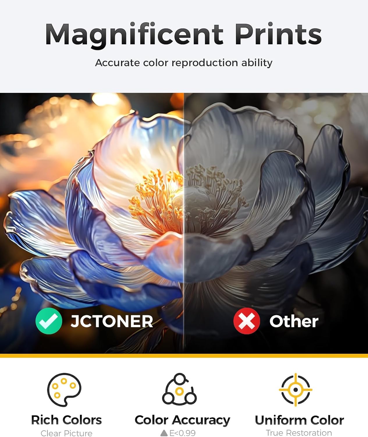 • The latest chip version: The JCTONER toner cartridges are equipped with the latest version of built-in chips, ensuring perfect compatibility between each toner cartridge and the printer. This enables you to print efficiently while maintaining stability and reliability, making installation convenient without the need for manual adjustments. All JCTONER toner cartridges have undergone strict quality testing and have obtained ISO9001 certification. High-quality toner cartridges can meet the demand for high printing volume. The fine toner ensures clear and stain-free printing results and extends the lifespan of the printer. You can purchase with confidence.