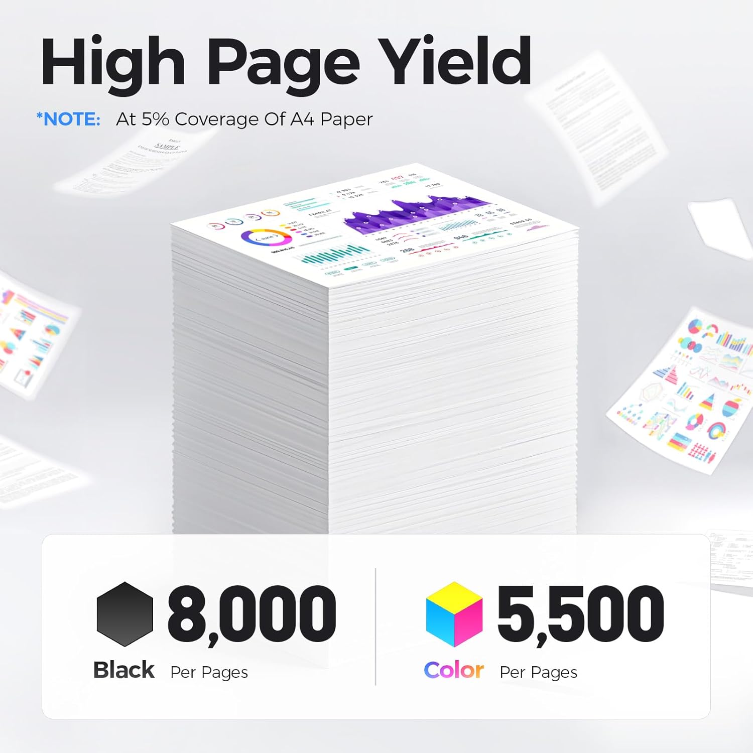 • High-Yield: up to 8,000‬ pages per C310/C315 Black and 5,500 pages per C310/C315 Color (Total 24,500 pages, 5% coverage).