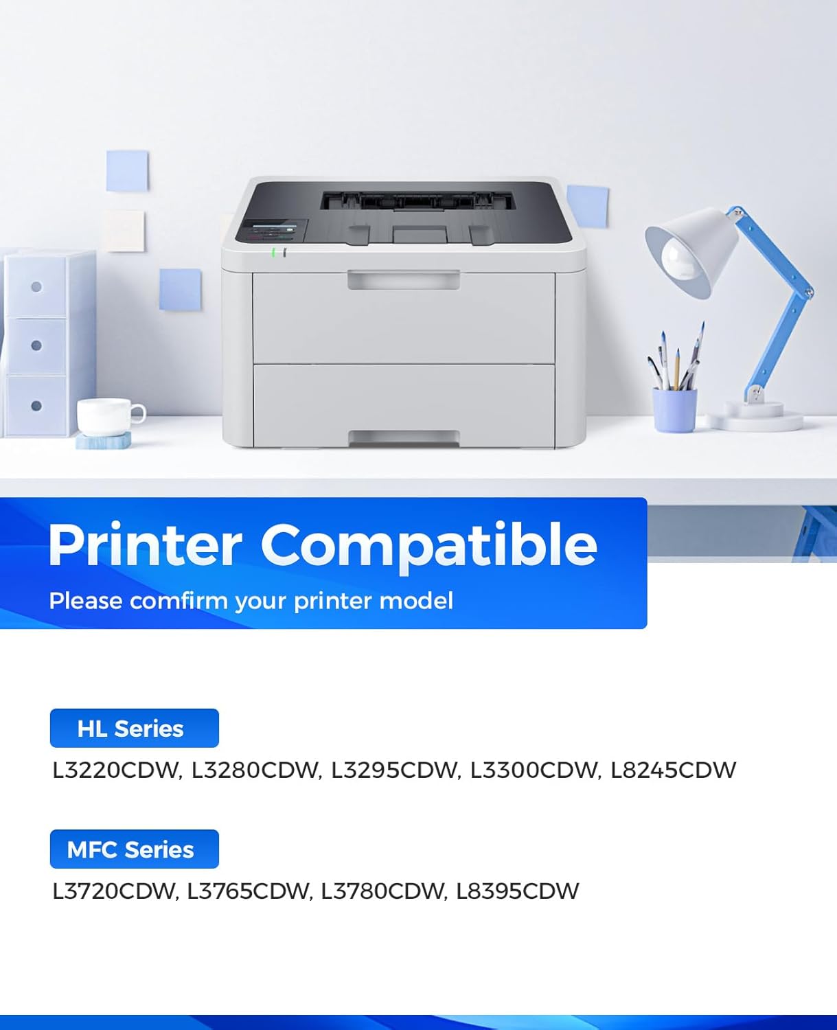 • Compatible Printers: Compatible with Brother MFC-L3720CDW MFC-L3765CDW MFC-L3780CDW MFC-L8395CDW HL-L3280CDW HL-L3220CDW HL-L3295CDW HL- L3300CDW HL-L8245CDW Series Printers.
