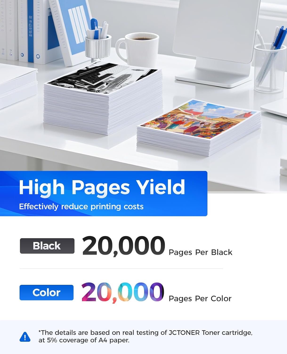 • The latest chip version: The JCTONER toner cartridges are equipped with the latest version of built-in chips, ensuring perfect compatibility between each toner cartridge and the printer. This enables you to print efficiently while maintaining stability and reliability, making installation convenient without the need for manual adjustments. All JCTONER toner cartridges have undergone strict quality testing and have obtained ISO9001 certification. High-quality toner cartridges can meet the demand for high printing volume. The fine toner ensures clear and stain-free printing results and extends the lifespan of the printer. You can purchase with confidence.