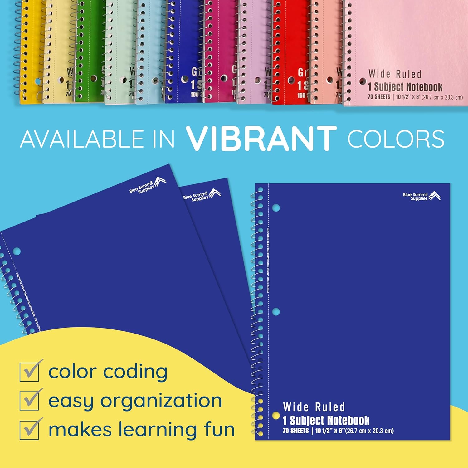• Classic Wide Ruled Format – Each wide ruled notebook features spacious lines and durable spiral binding, great for students, teachers, or anyone who prefers wide ruled paper.