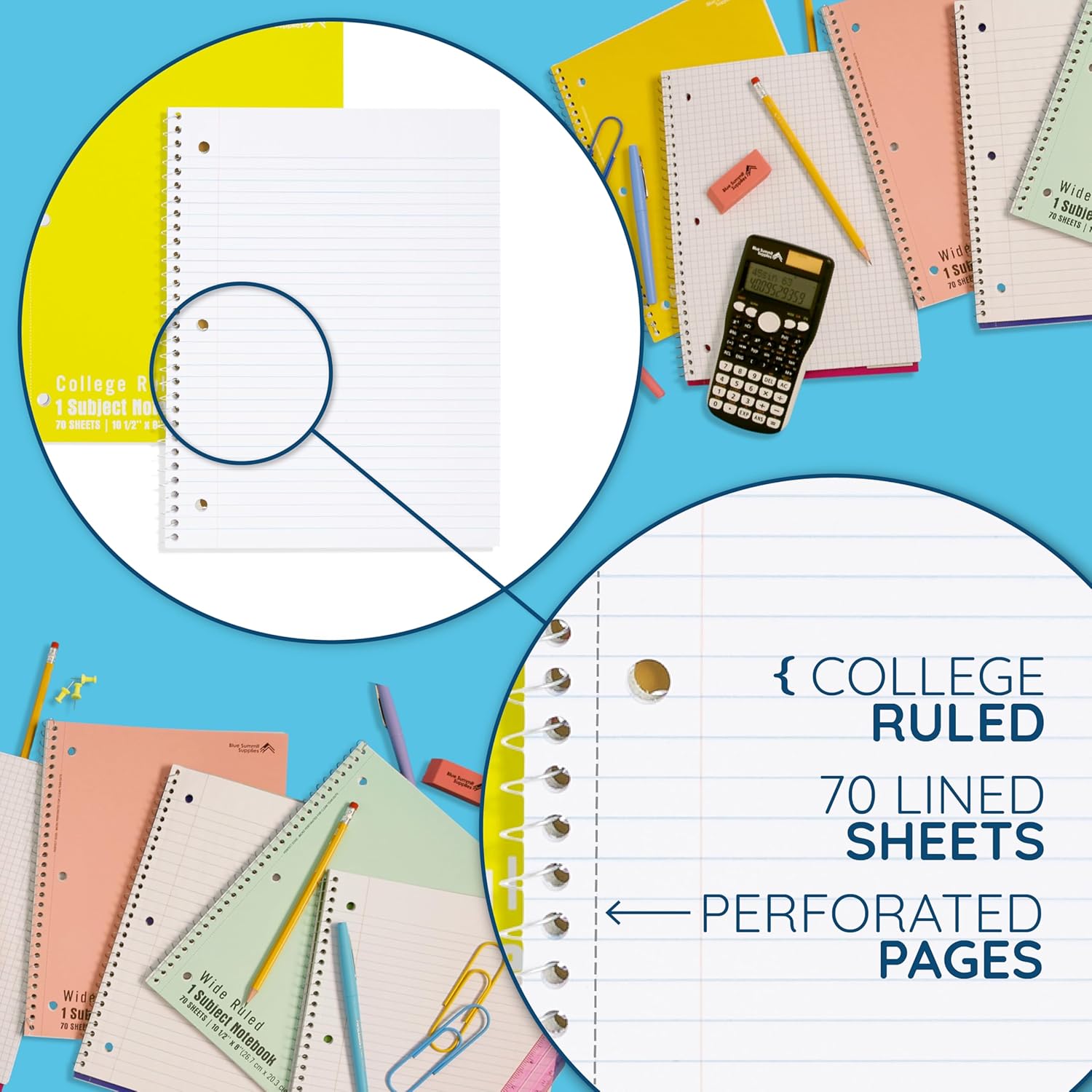 • Clean and Consistent Writing Surface – Each 1 subject spiral notebook college ruled includes 70 pages of smooth, lined paper—ideal for writing notebooks, schoolwork, or journaling with minimal bleed-through.