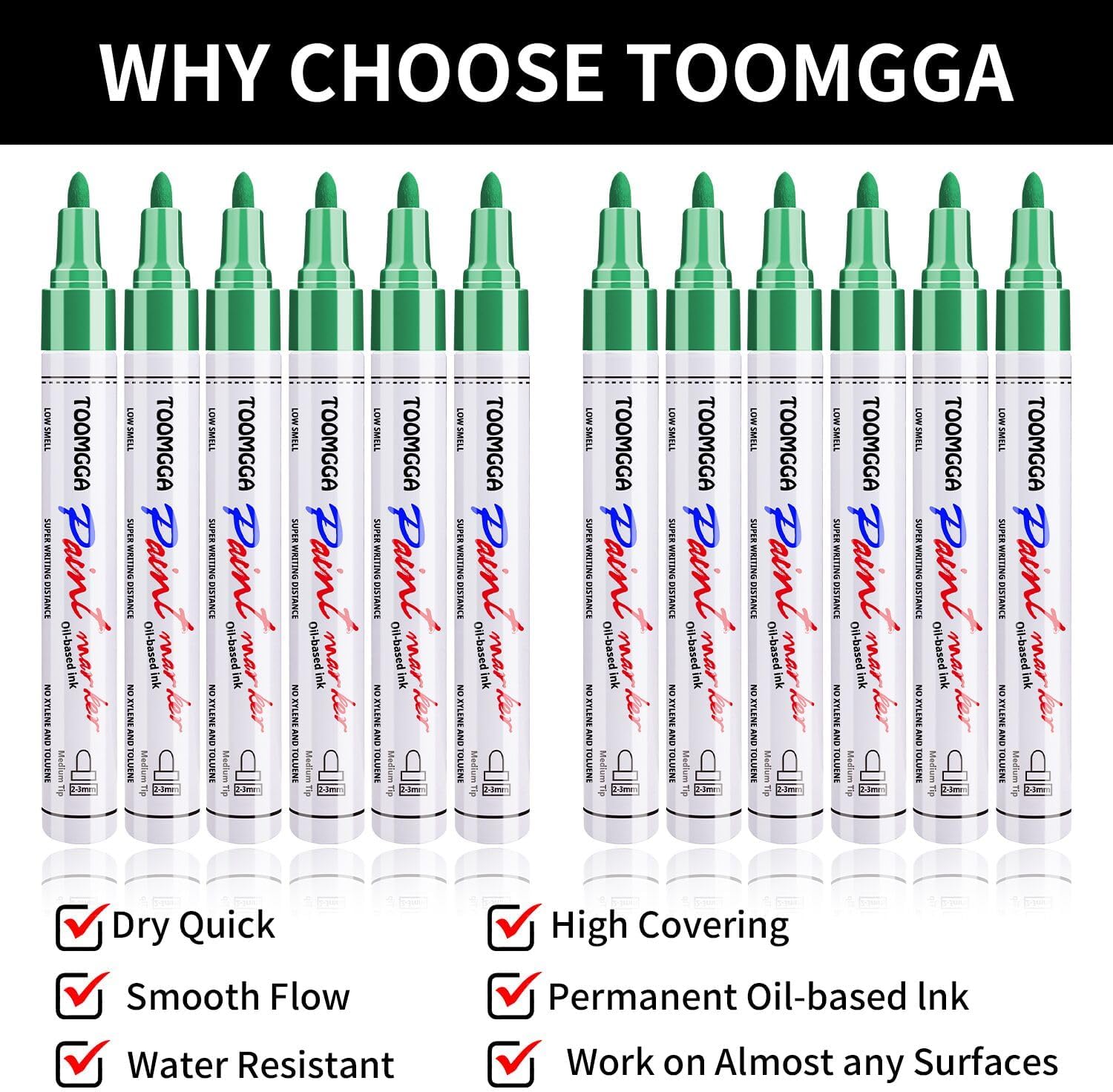 Green Permanent Paint Pens Paint Markers - 12 Pack Oil Based Markers, Quick Drying and Waterproof Marker Pen, Car Tire, Metal, Rock Painting, Wood, Fabric, Plastic, Canvas, Mugs