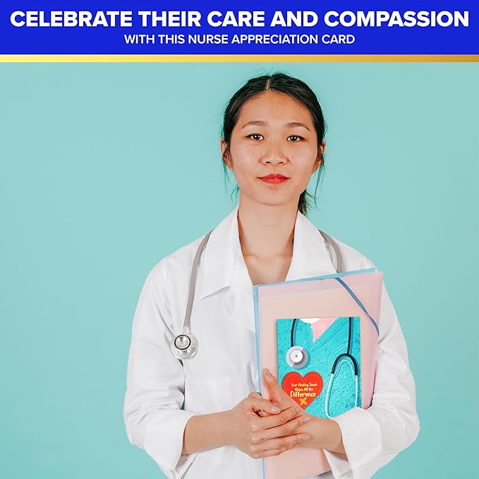 • CARING WORDS FOR NURSES - This thank you nurse card captures the compassion & commitment of nurses, featuring a vibrant heart cutout with gold foil accents. The nurse greeting card comes with a printed message that conveys your heartfelt gratitude.