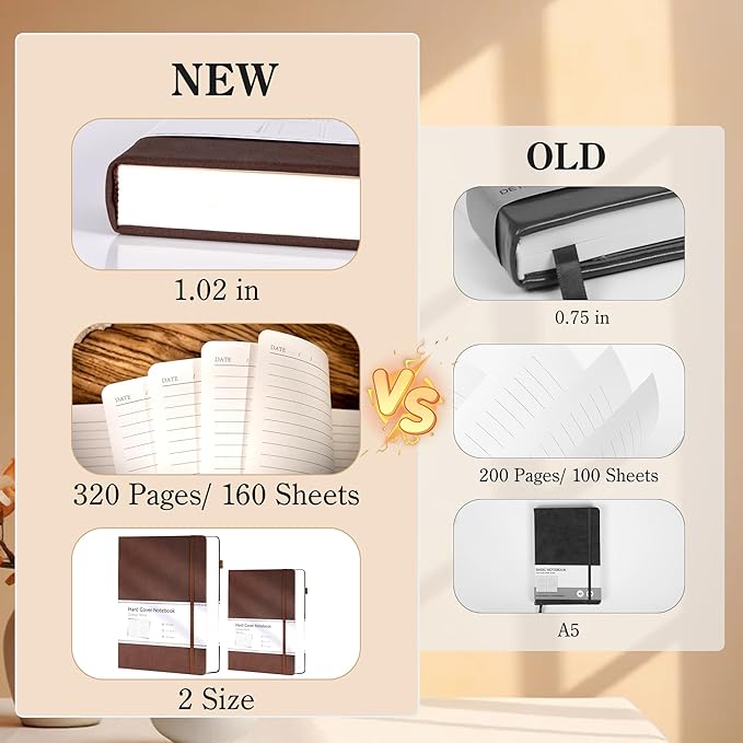 • 180° FLAT LAYING DESIGN: The notepad is securely bound and sits perfectly 180 degrees, the pages are made of high quality thick paper. Expandable interior pocket for storing documents, 2 beautiful ribbons for quickly finding contents, elastic band works well to keep the lid closed, pen loop makes this notebook easy to carry.