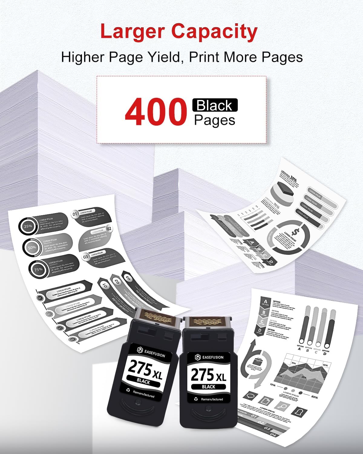 • Longer-lasting Prints: EaseFusion 275 ink cartridges for canon printers offers an impressive high page yield of at least 400 pages per for canon 275xl black ink cartridge (based on 5% coverage of A4 paper). Get more printing without the need for frequent cartridge replacements
