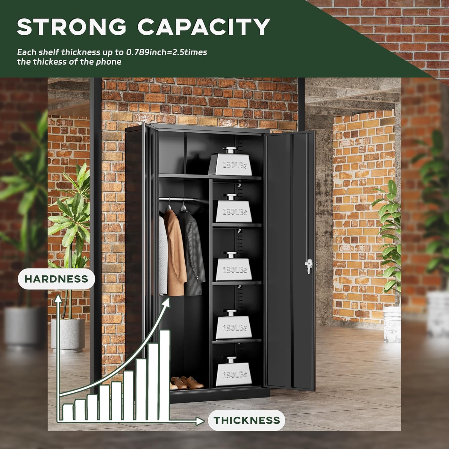 • [ Durable Load-bearing Design ]: Greenvelly metal wardrobe cabinet features a sturdy load-bearing design, made of high-grade cold-rolled steel plates with a thickness of up to 0.8mm. The large shelf can stably carry a heavy load of 180 pounds, while the small shelf can safely support 120 pounds, ensuring the stability of the structure. In addition, metal wardrobe cabinet with hanging bars is made of thickened steel, allowing you to say goodbye to the worry of clothing damage during storage.