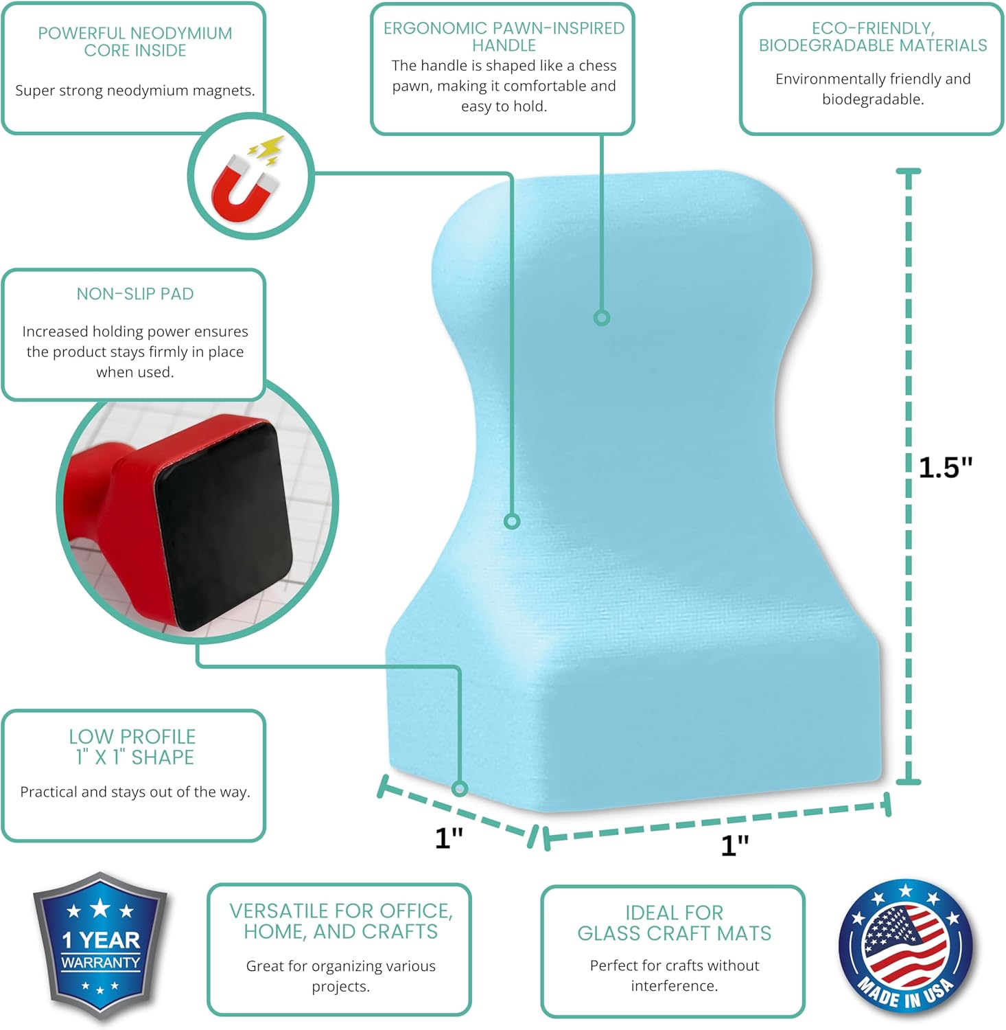 Glassboard Studio MiniPawn Magnet - Strong Neodymium Rare Earth Magnets for Fridge, Whiteboard, Locker & Magnetic Glassboards - Ideal for Crafting & Office Use - Strong Fridge Magnets (Ice Blue, 4)