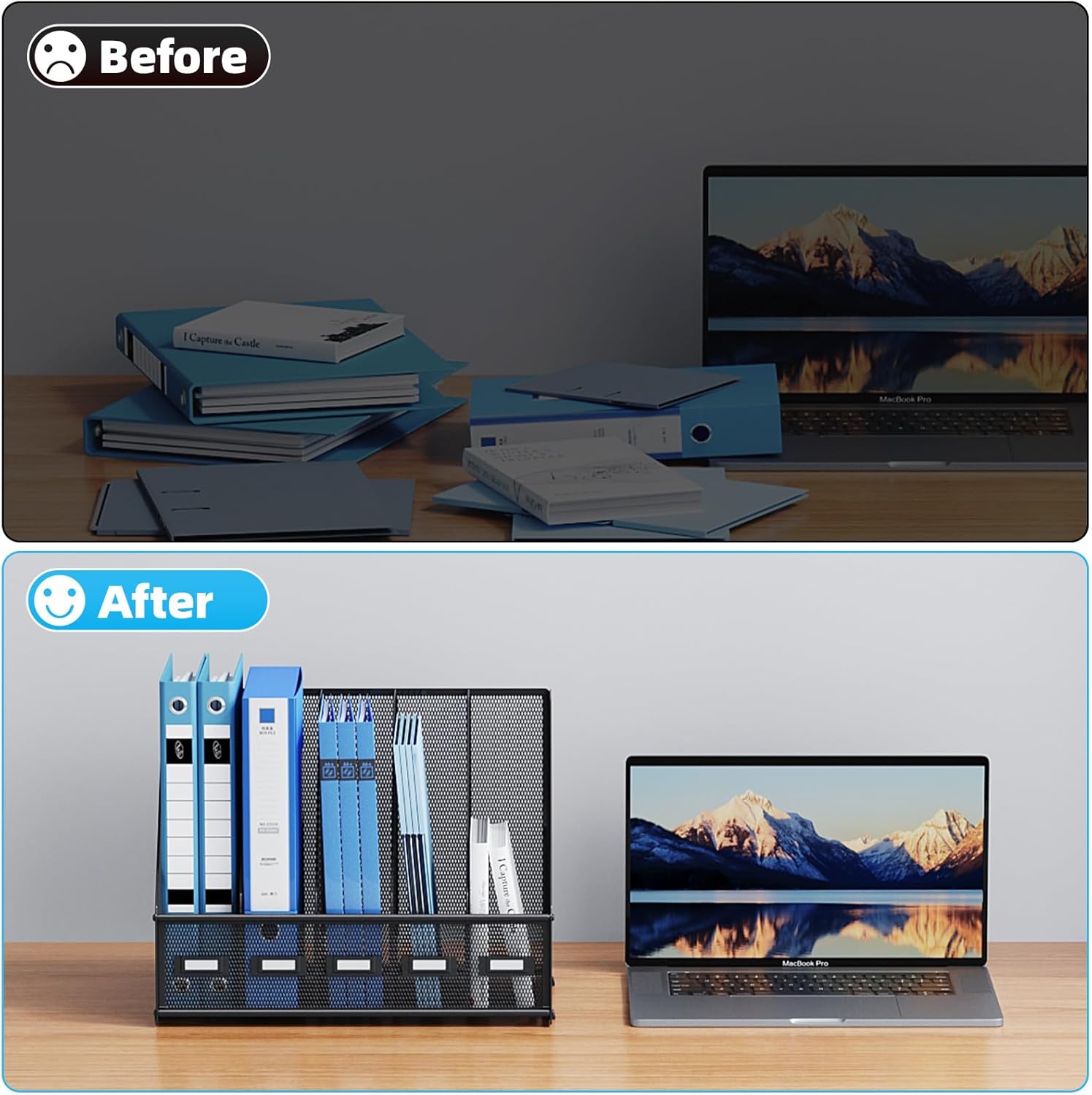 • 【Large Capacity】This magazine rack has 5 compartments. Our desktop organizer has a huge capacity, almost all kinds of documents can be put into our magazine organizer, allowing you to save space and keep your desktop tidy.