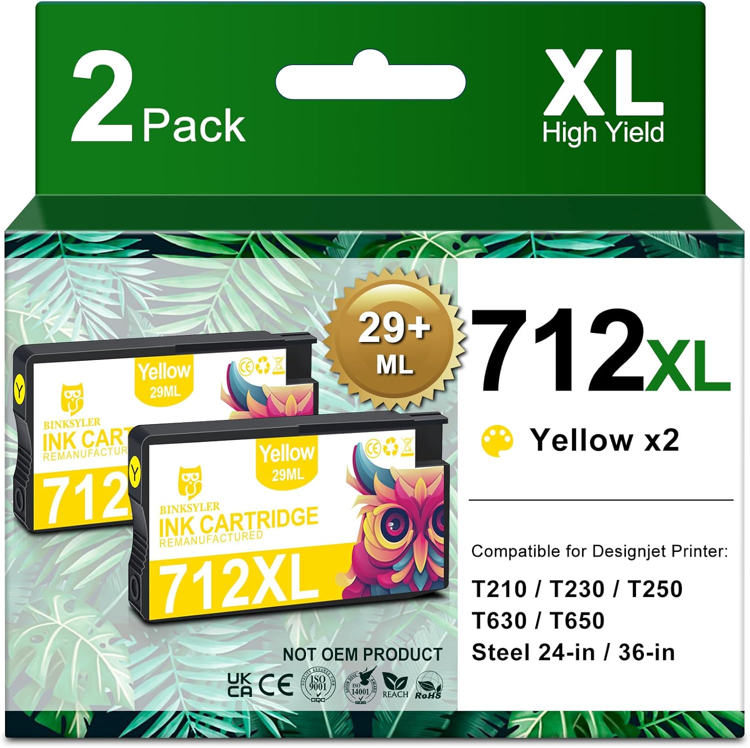 • 【Strict Quality Control】All 712 ink cartridges are manufactured in ISO9001 & ISO14001 factory and certified to REACH, RoHS, CE standards. Each 712 ink cartridge is rigorously tested before leaving the factory.
