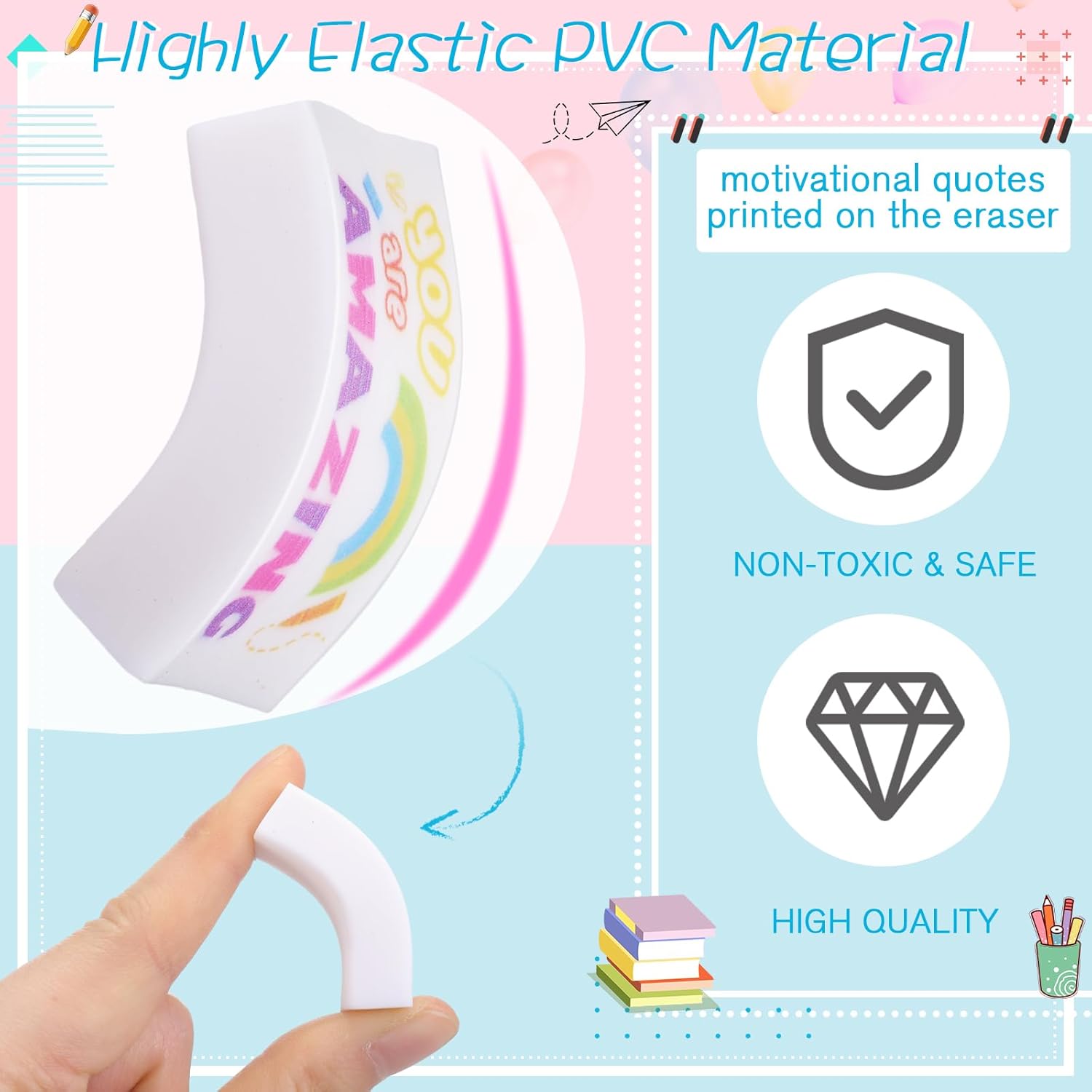 • Inspirational Features: what sets our drawing eraser apart is the printed inspirational cute words on each item; Using these erasers not only helps you to correct mistakes, but also serves as a constant reminder to stay motivated, making every writing or drawing session inspiring and fun filled