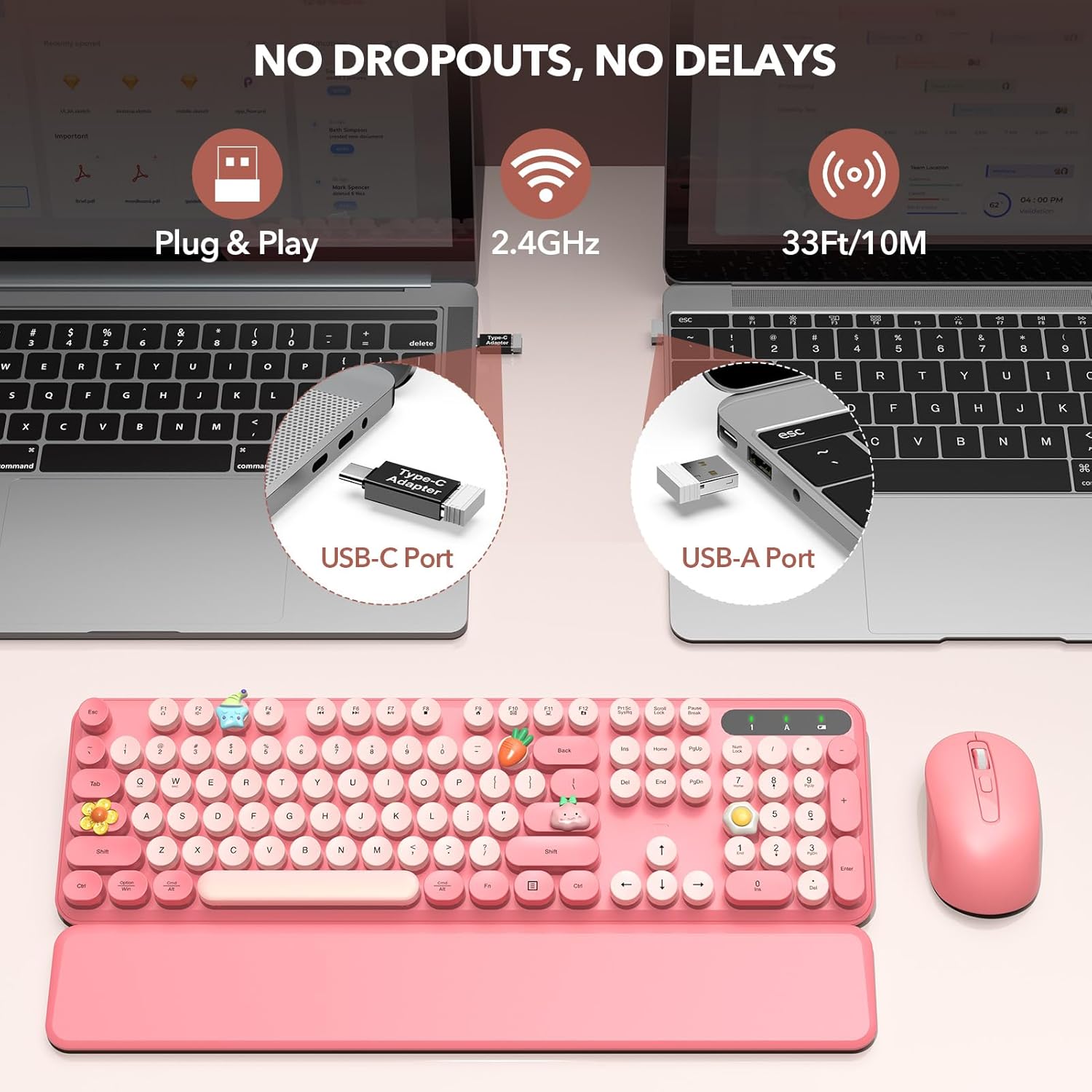 • School Essentials & Desk Accessories: The cute keyboard and mouse combo allows you to use your laptop comfortably while having the freedom of wireless. It is a must-have for back-to-school, and also a practical office accessory and desk decoration