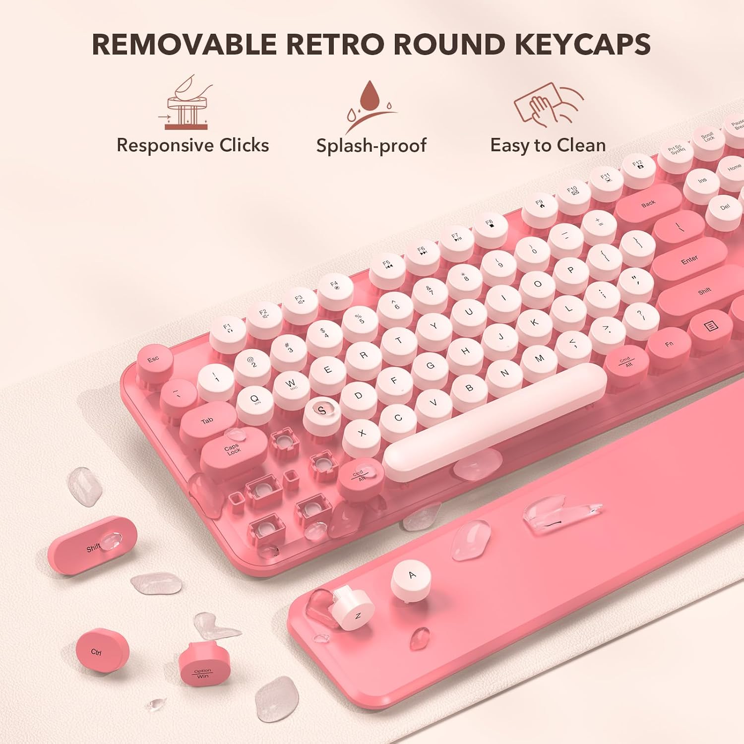 • Floated Retro Round Keycaps & Splash-proof Design: The crisp key sound takes you back to the industrial era, and the retro circle keycaps facilitate finger positioning. The floating keys under your fingertips are comfortable and skin-friendly