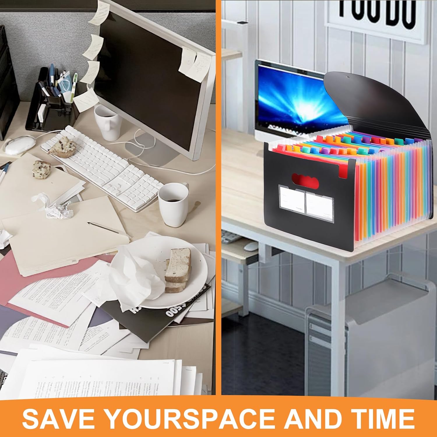 • Perfect Document Organization: 24 pockets, can store more than 4000 paper documents, suitable for A4/ letter size paper, suitable for storing documents in daily life. It stands on the table by itself and is not easy to tip over. Extended File Organization is a perfect file organization for home, office, school and travel