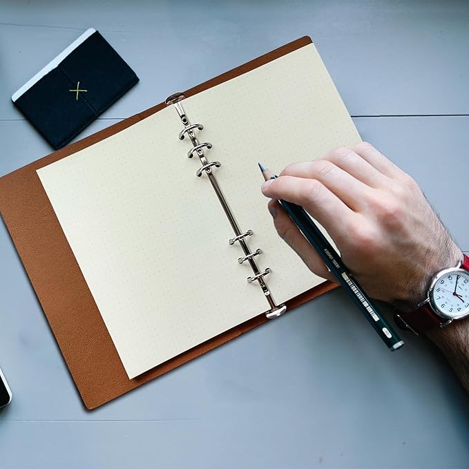 • Loose-leaf paper core: Fits standard 6-hole ring binders, a5 size notepads without punching.