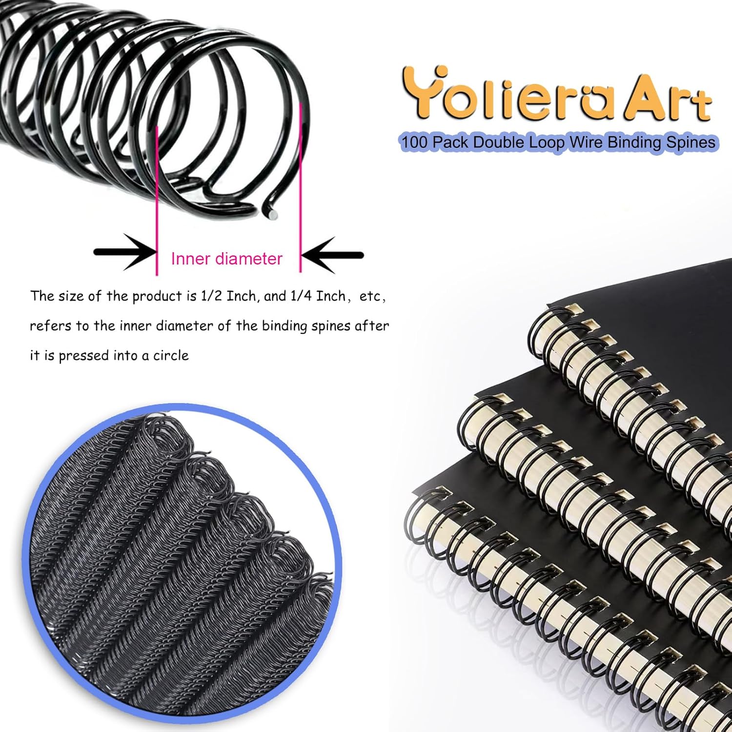 • High-Capacity Binding for Professional Use: Each YolieraArt double loop wire binding spine securely holds up to 120 sheets of standard A4 paper, ideal for thick reports, calendars, or notebooks. The metal inner wire structure ensures consistent tension to keep pages firmly aligned without shifting. With a 9/16 inches diameter and 0.8mm thickness, these spines balance flexibility and strength, supporting smooth 360-degree page rotation.