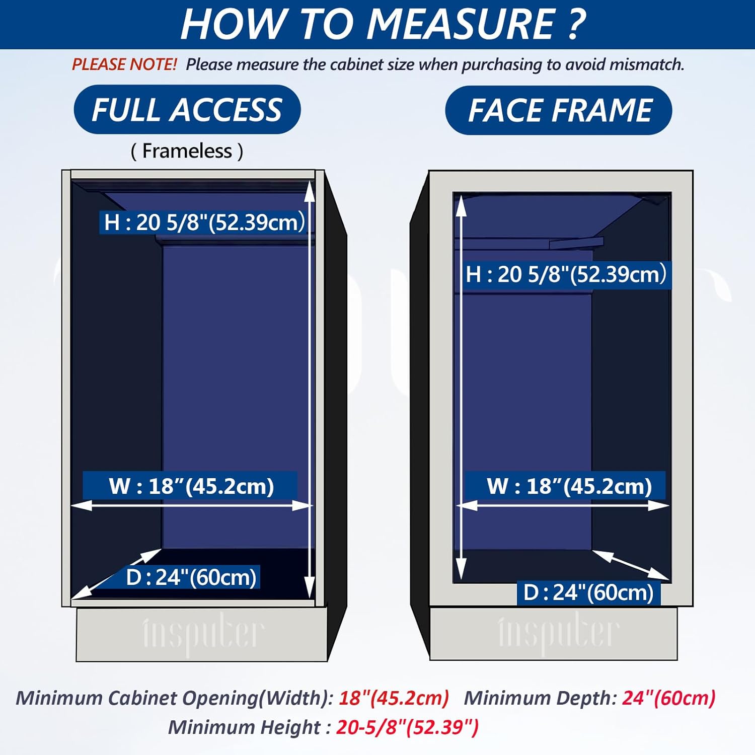 • Slide Out Trash Can Size: 14.6“ W x 22.04” D x 18.9“ H; Trash can: 16.1"W x 11.3"D x 17.3"H; Fits Minimum cabinet size: 18” W x 24 “D x 20.6” H. Please measure the cabinet dimensions before purchasing to avoid mismatch between the cabinet and the sliding trash can under cabinet. Pull out trash can for kitchen cabinets is easy to install with detailed instructions, installation video, easy to understand