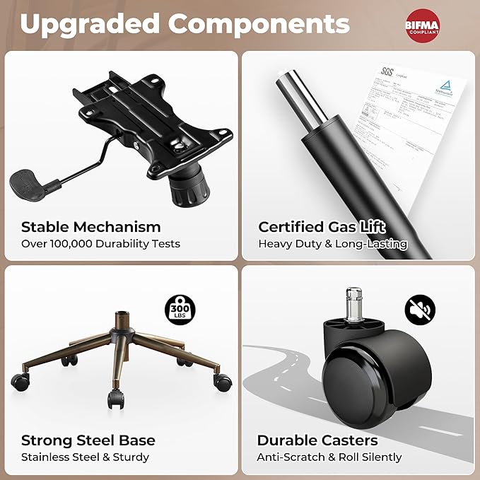 • Sturdy Construction: This padded task armchair features strong metal frame, curved backrest brackets that follow the curve of the human spine for stress relief, tested adjustment mechanisms and gaslift for stability even for tall and strong people, and high-quality 360° swivel rolling rotating casters avoid scratching the floor, can support up to 300 lbs. Whether you're working or relaxing, this modern chair offers a comfortable experience