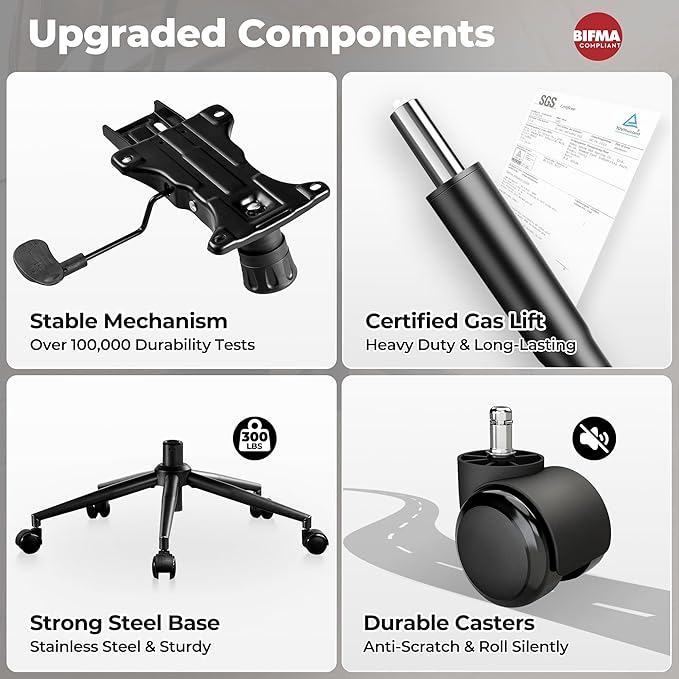 • Sturdy Construction: This padded task armchair features strong metal frame, curved backrest brackets that follow the curve of the human spine for stress relief, tested adjustment mechanisms and gaslift for stability even for tall and strong people, and high-quality 360° swivel rolling rotating casters avoid scratching the floor, can support up to 300 lbs. Whether you're working or relaxing, this modern chair offers a comfortable experience