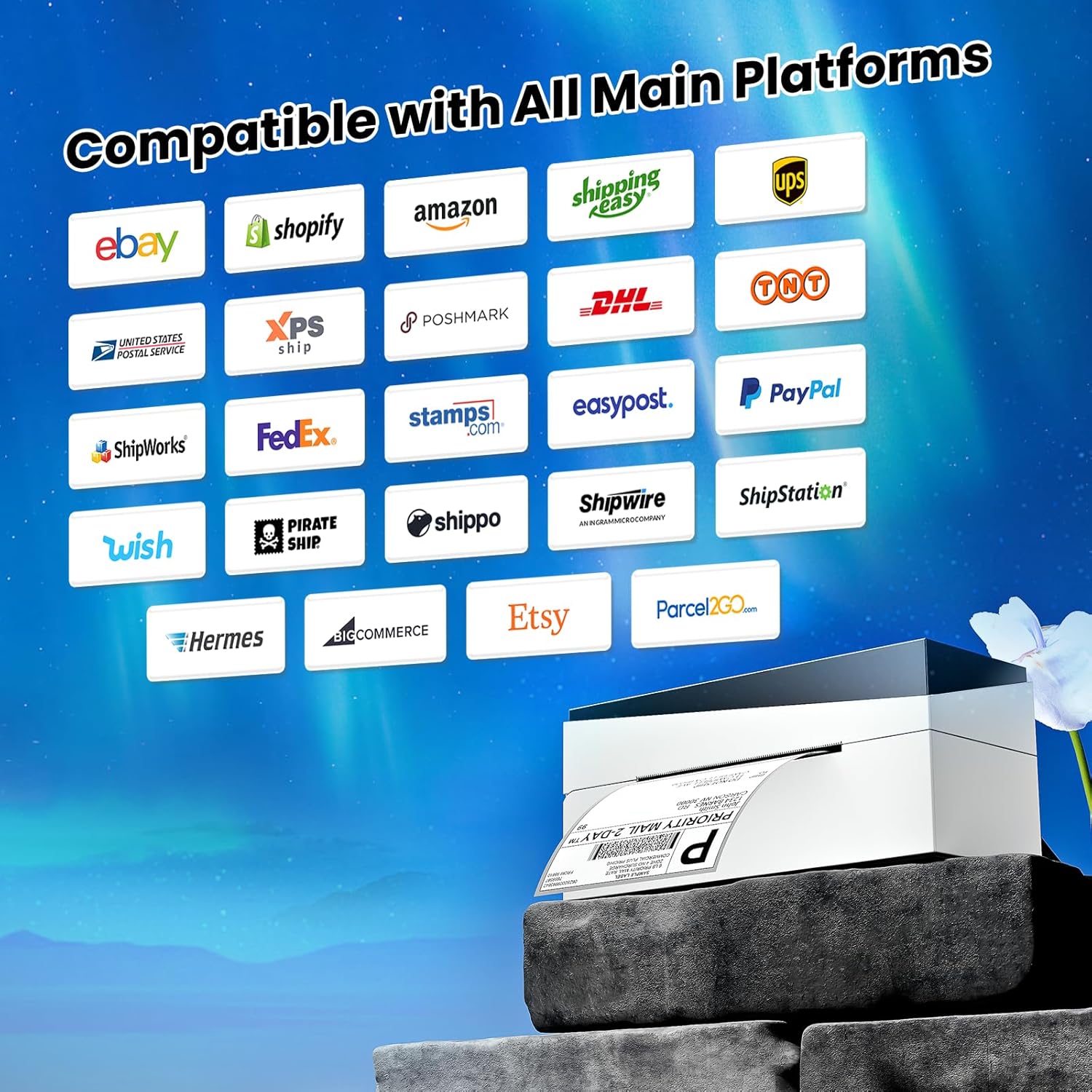 • [Strong Platform Compatibility] - Label printer for small business is compatible with USPS, UPS, eBay, Esty, Shopify, Amazon, PayPal, Poshmark, and other major sales platforms. Make printing more convenient. Ideal for your online small business for shipping packages