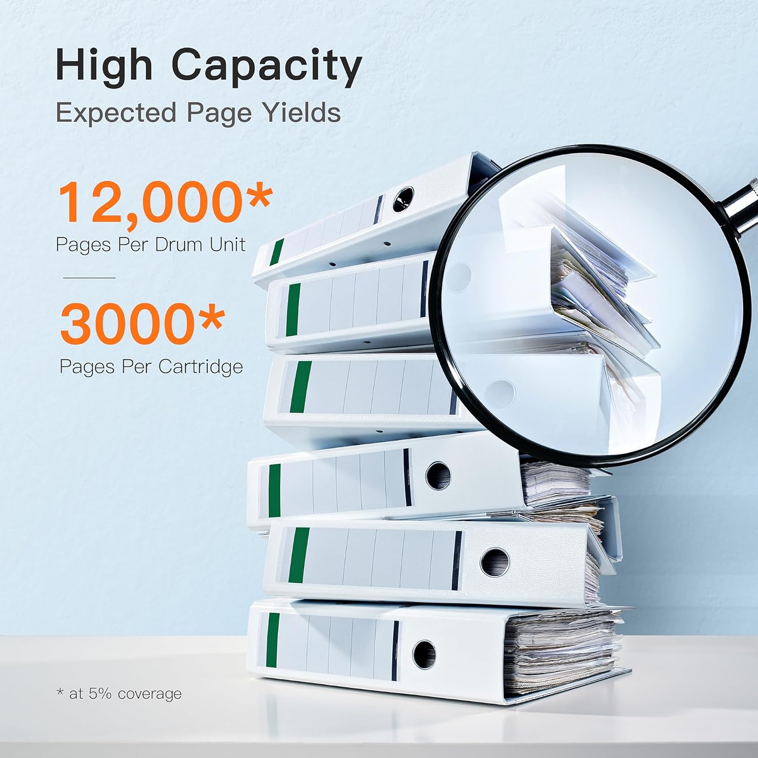 • Page Yield: 3000 pages per TN760 toner cartridge, 12000 pages per drum unit (based at 5% coverage)
