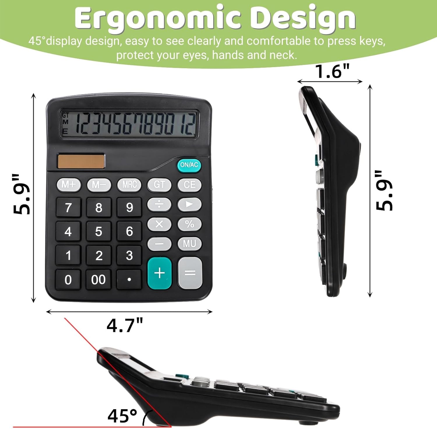 • Thoughtful Design: Our basic calculator features an inclined viewing angle and an upright display that reduces glare, providing an optimal user experience. Large, responsive buttons allow for smoother and faster operation. The calculator will automatically turn off after several minutes of inactivity.