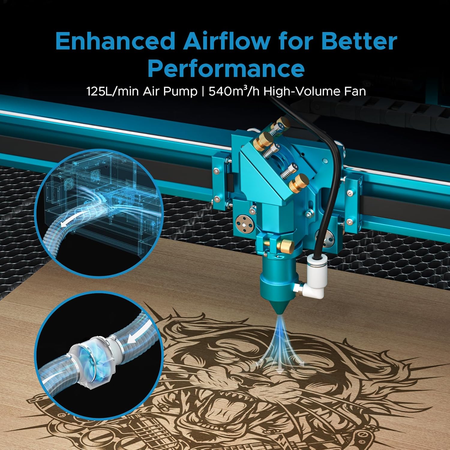 • Experience Safe & Clean Laser Engraving: With comprehensive protection features, including water protection, air assist, temperature alarms, cover protection, and an emergency stop button, you can engrave with peace of mind knowing that your safety is always prioritized