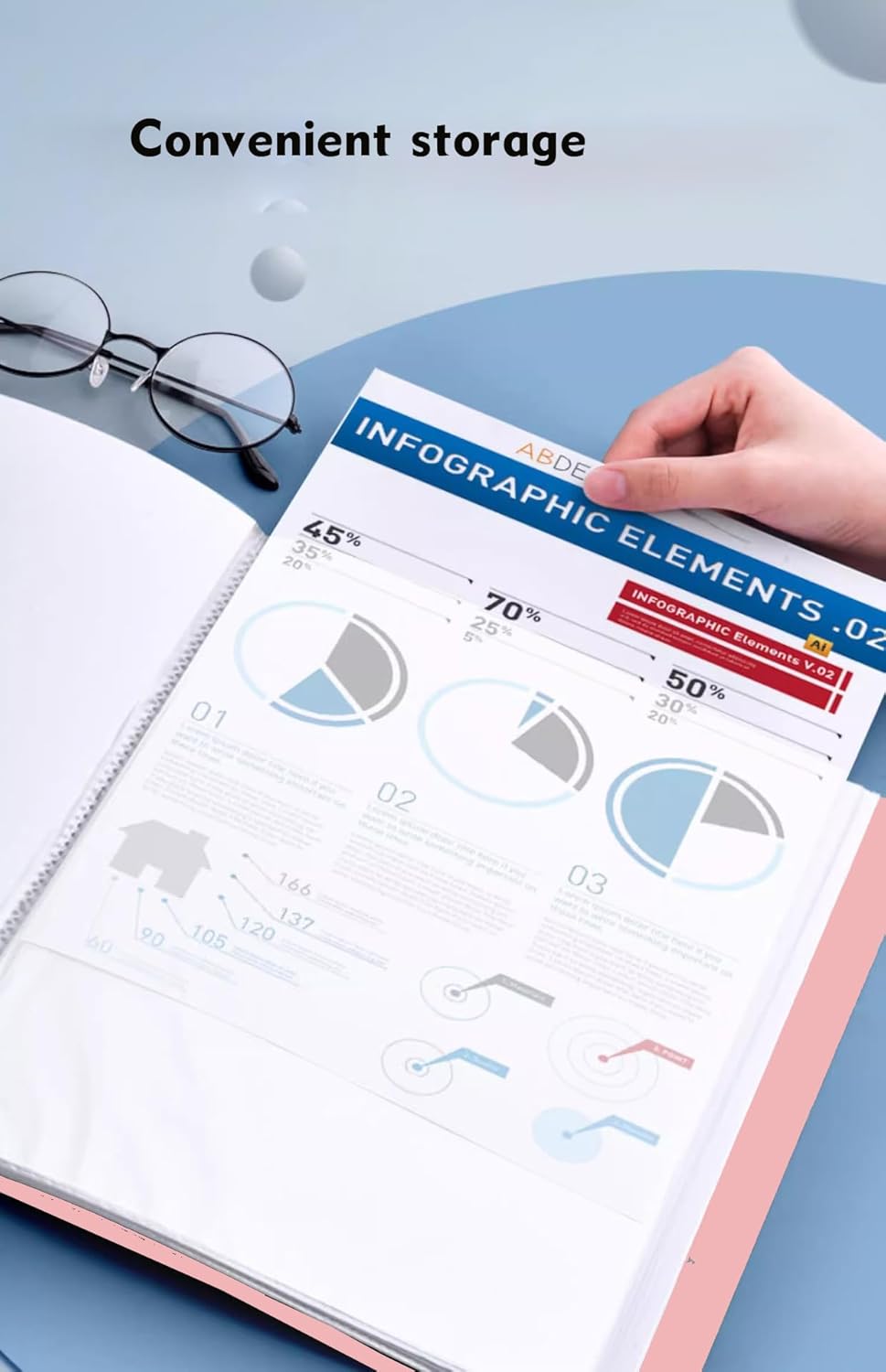 • 100 Secure Pockets for Maximum Organization — Holds A4-sized documents neatly; each pocket is extra-thick to prevent tears and spills, keeping your papers safe and organized.